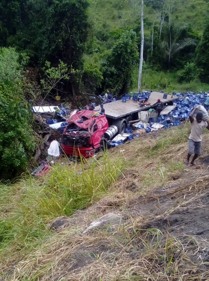 A carreta carregada de cerveja, só que vazia, capotou na manhã desta terça-feira, 12/01 na BR-101, trecho de Travessão/Camamu.