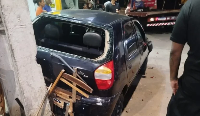 Carro desce de ré e atinge mesas de pizzaria em Mutuípe; ninguém ficou ferido