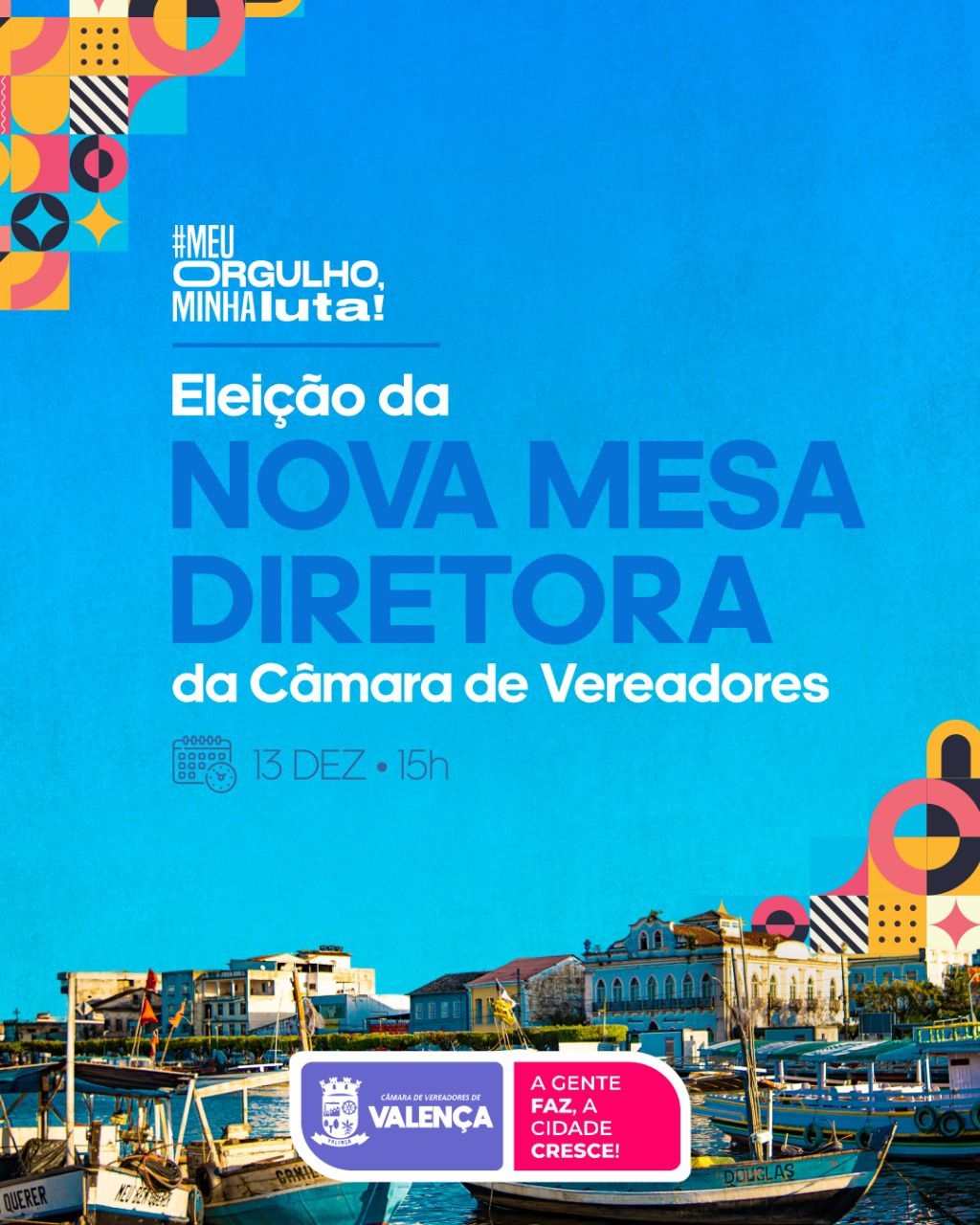 A Câmara Municipal de Valença/Ba realiza, a partir das 15h da próxima terça-feira 13/12, a sessão extraordinária para eleger a Mesa Diretora do Poder Legislativo para o próximo biênio de 2023/2024.