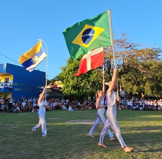 A Ilha de Boipeba, no município de Cairu, foi palco de uma apresentação internacional, na tarde desta terça-feira (25/07). O grupo de ginastas dinamarqueses Vesterholdet encantou o público da ilha, que lotou a Praça Santo Antônio, para assistir um espetáculo recheado de dança, movimentos acrobáticos, giros e saltos, além de uma pitada teatral retratando um pouco da cultura dinamarquesa.