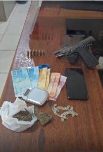 Na tarde desta quinta-feira (28), policiais militares da 72ª CIPM apreenderam, uma pistola calibre .380, munições, drogas, dinheiro, balança de precisão e um veículo clonado no povoado de Campinhos, em Maraú.