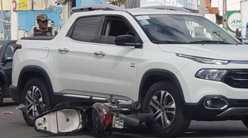 Um motocicleta foi parar embaixo de uma caminhonete após uma colisão na Avenida Juracy Magalhães, na tarde desta sexta-feira (23), no centro de Santo Antônio de Jesus. De acordo com o Voz da Bahia, o motociclista teve ferimentos leves. Não foi divulgada a causa do acidente.