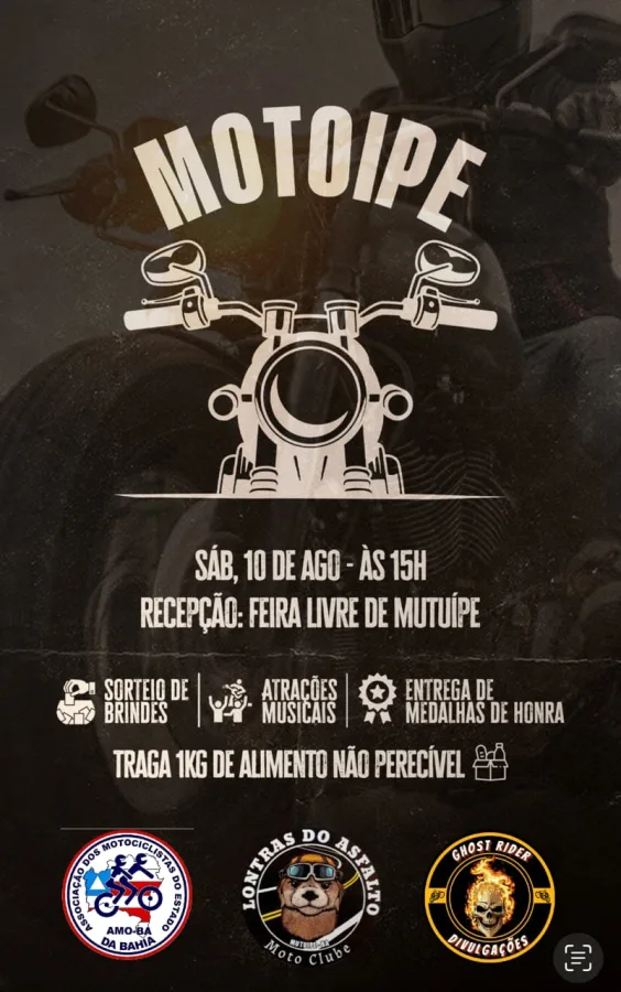 Acontece na tarde e noite deste sábado (10) a segunda edição do “Motoipe Moto Fest”, reunindo motociclistas de diversos lugares da Bahia e do Brasil.