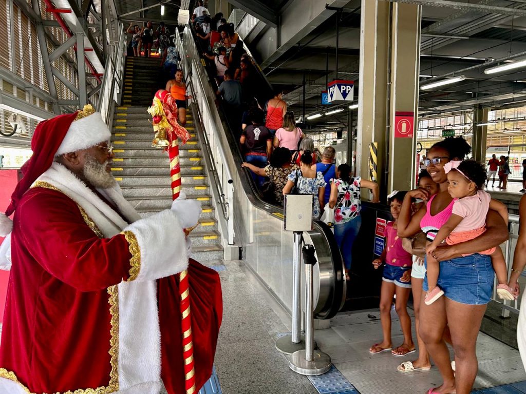 Papai Noel encanta passageiros e celebra o Natal no metrô de Salvador