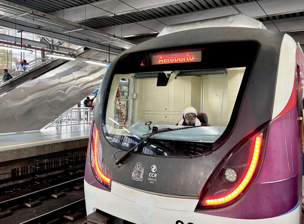 A ação da CCR Metrô Bahia encanta os passageiros com apresentações de corais natalinos e a presença do Papai Noel até amanhã (19). Já o trem iluminado, um dos maiores atrativos, seguirá em operação nas Linhas 1 e 2 até o dia 6 de janeiro.