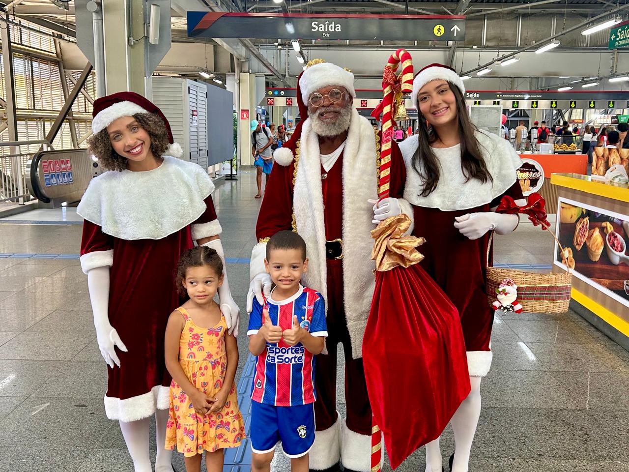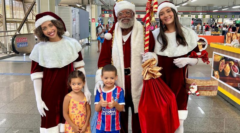 Papai Noel encanta passageiros e celebra o Natal no metrô de Salvador
