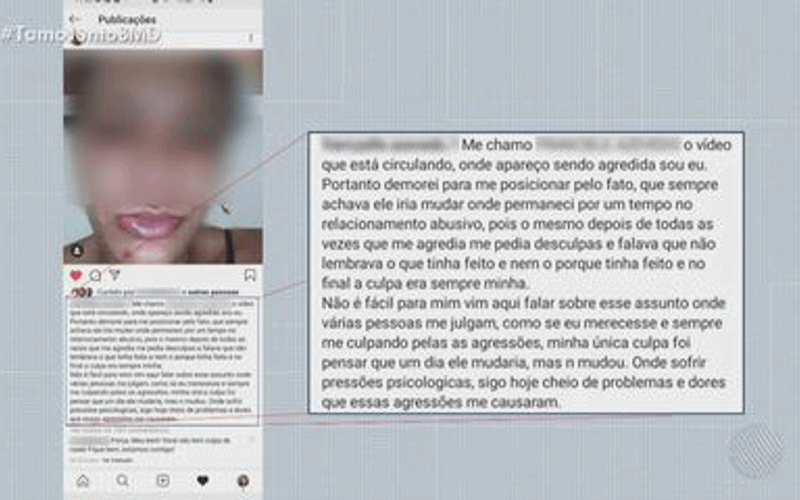 “Não é fácil para mim vim aqui falar sobre esse assunto onde várias pessoas me julgam, como se eu merecesse e sempre me culpando pelas as agressões, minha única culpa foi pensar que um dia ele mudaria, mas n mudou. Onde sofri pressões psicológicas, sigo hoje cheio de problemas e dores que essas agressões me causaram”, disse. *G1