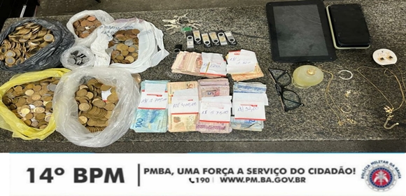 Na ação, a PM apreendeu uma quantia em dinheiro, e aparelhos eletrônicos. O suspeito foi levado para a delegacia e está a disposição da justiça.